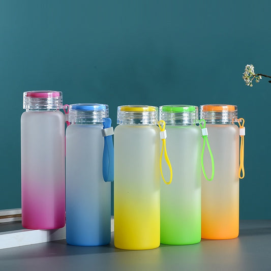 50Pack Gradient Color Drinking Water Bottles 17oz Sublimation Frosted Glass Water Bottles With Plastic Lid