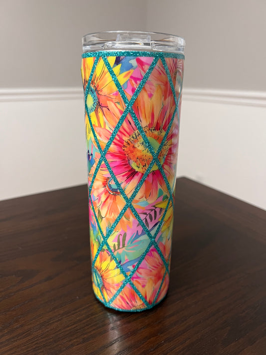 RTS #40 Bright Sunflower Diamond 20oz Skinny Tumbler-Pre Made-RTS
