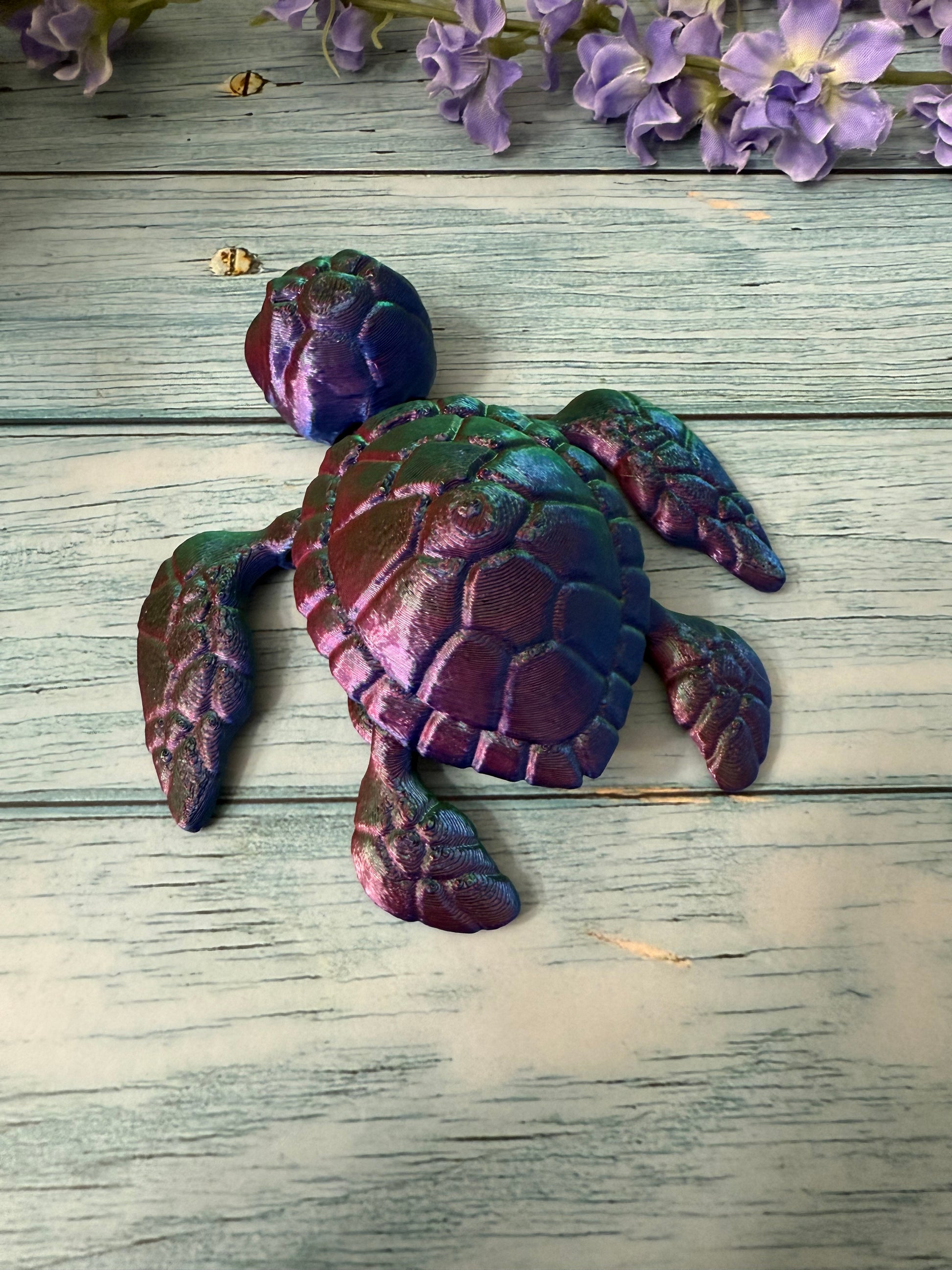 Turtle lover? This unique cute little toy for fidgeting or display would make a cute addition to your collection. 3D printed fully articulated sea turtle is adorable! Perfect little gift or just because.