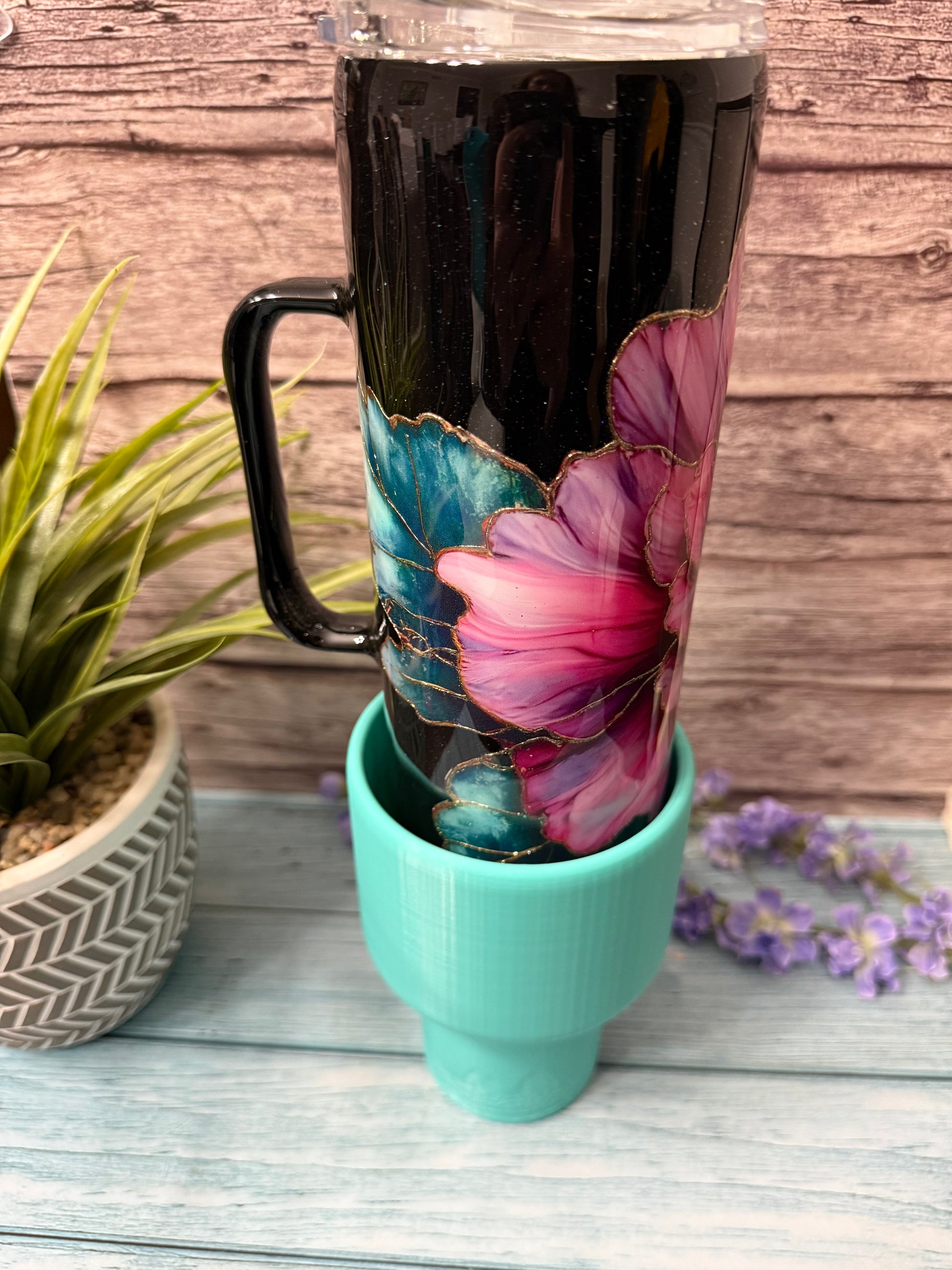 This is your solution!! This custom sized 3D printed Cup Holder Extender will allow you to bring your favorite tumblers etc. anywhere you go.
