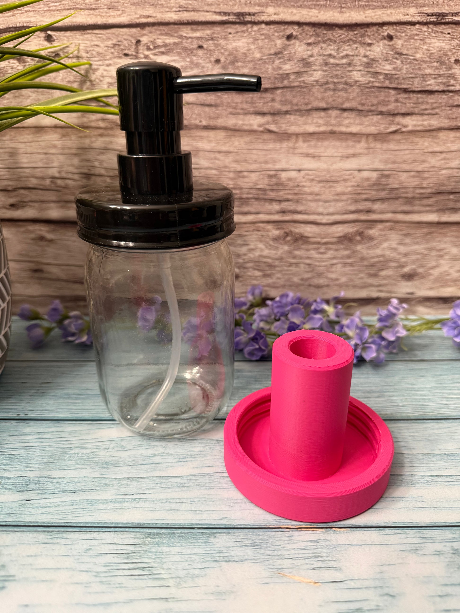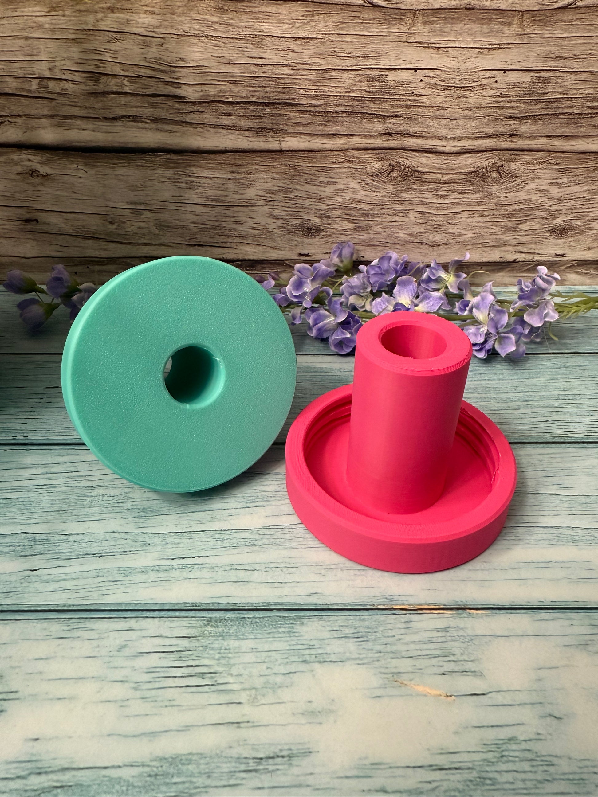 Custom 3D printed Reg Mouth Mason Jar turner attachment. (Shown in Teal & Magenta)
