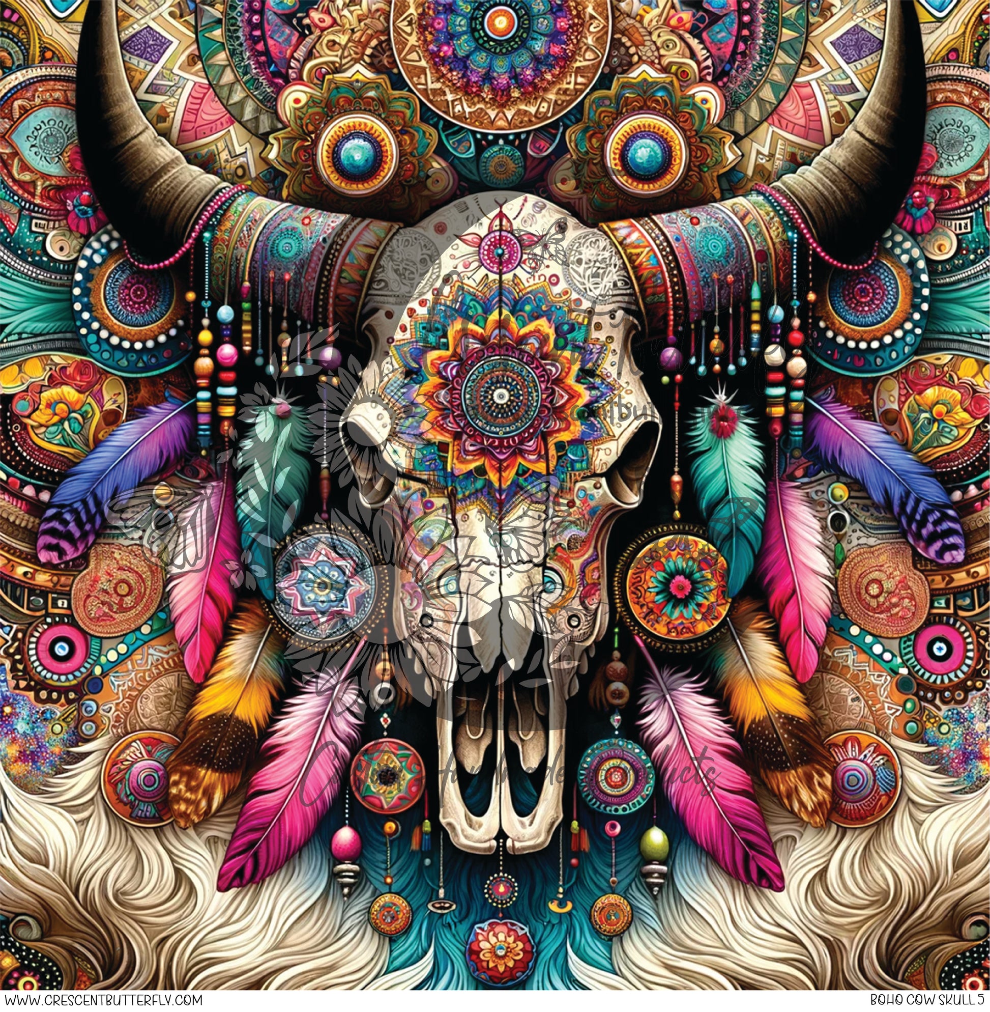 Boho Cow Skull 5 Printed Vinyl Sheet/Wrap