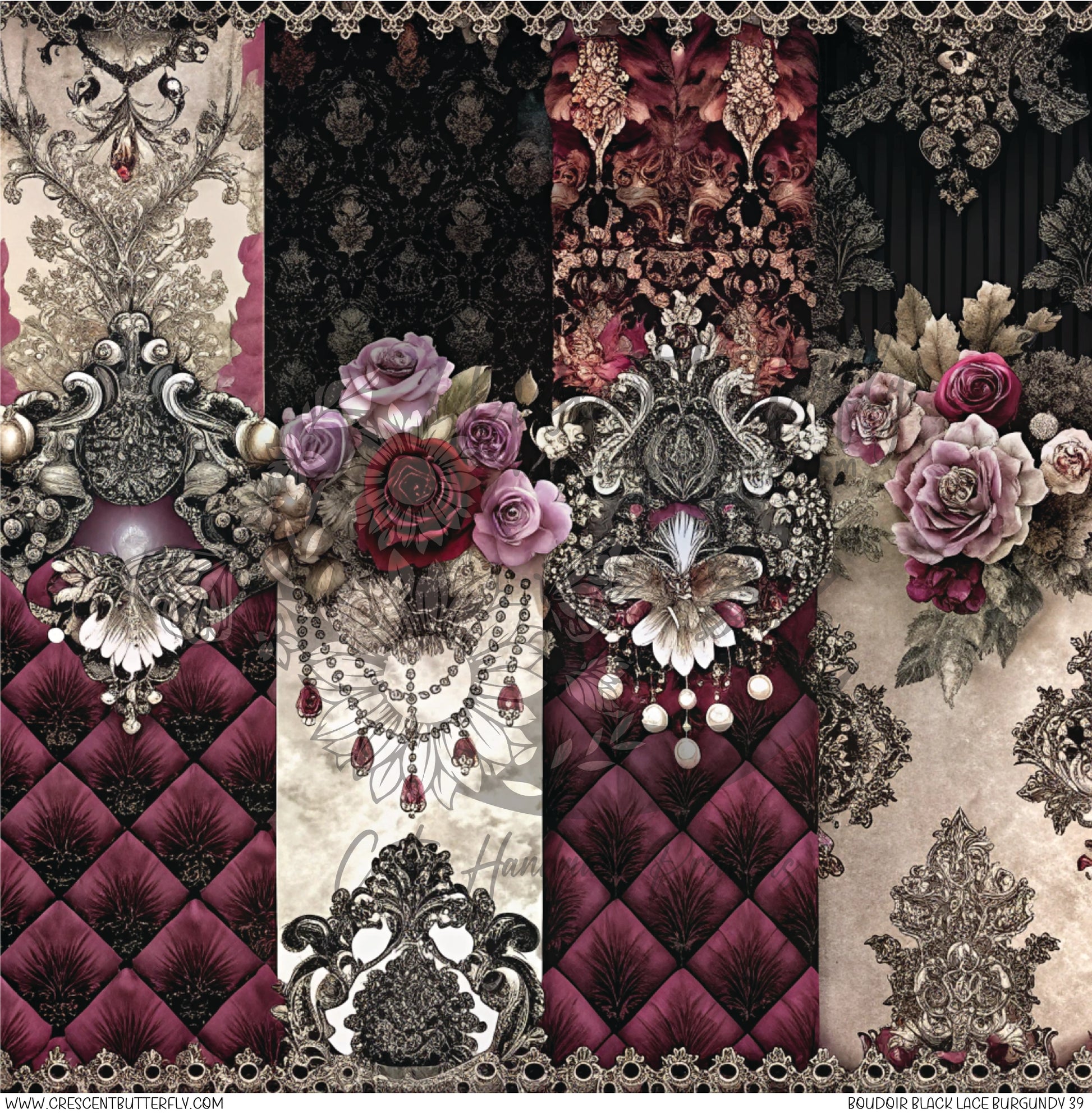 Boudoir Black Lace Burgundy 39 Printed Vinyl Sheet/Wrap
