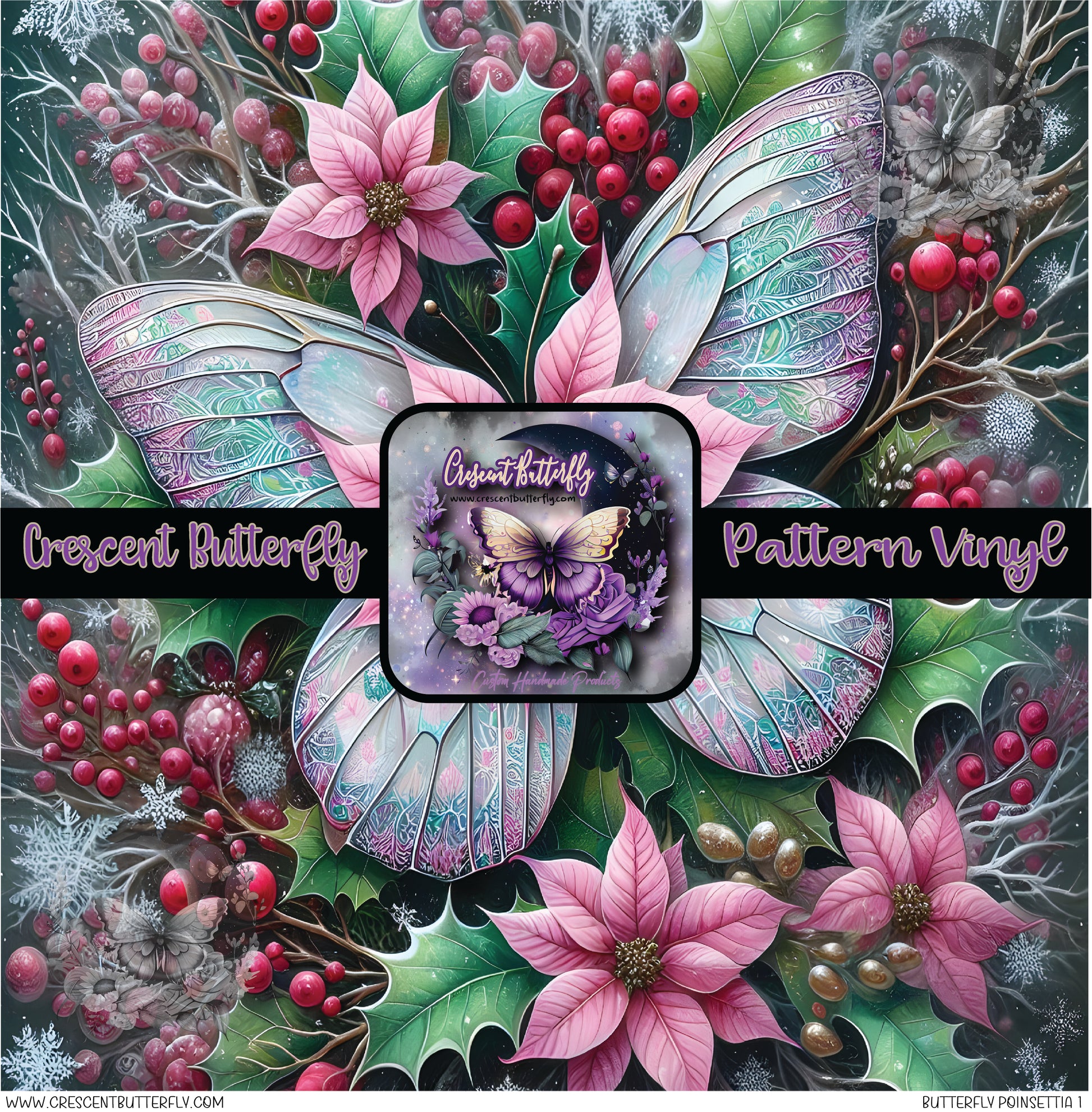 Butterfly Poinsettia 1 Printed Vinyl Sheet/Wrap