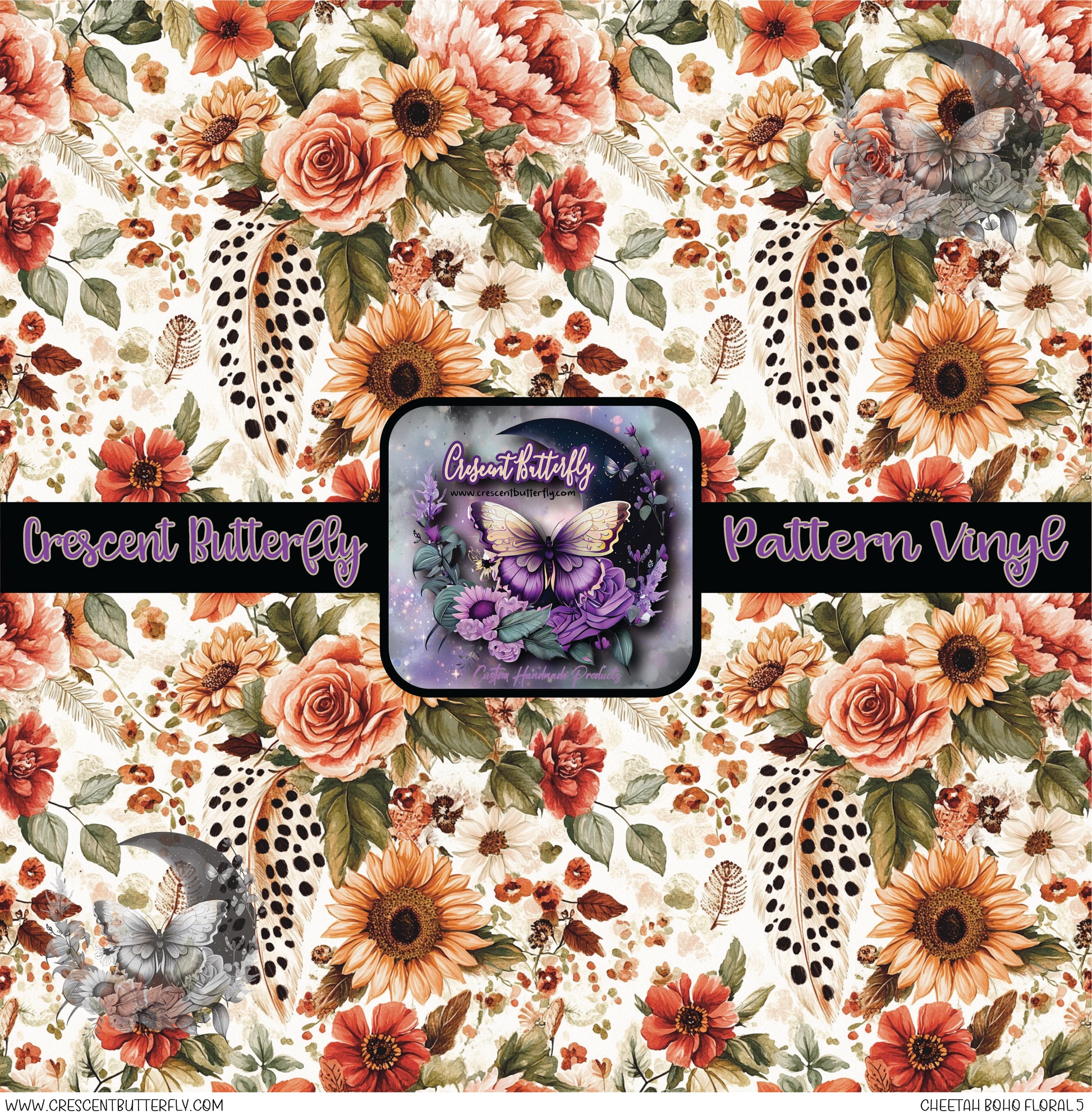 Cheetah Boho Floral 5 Printed Vinyl Sheet/Wrap