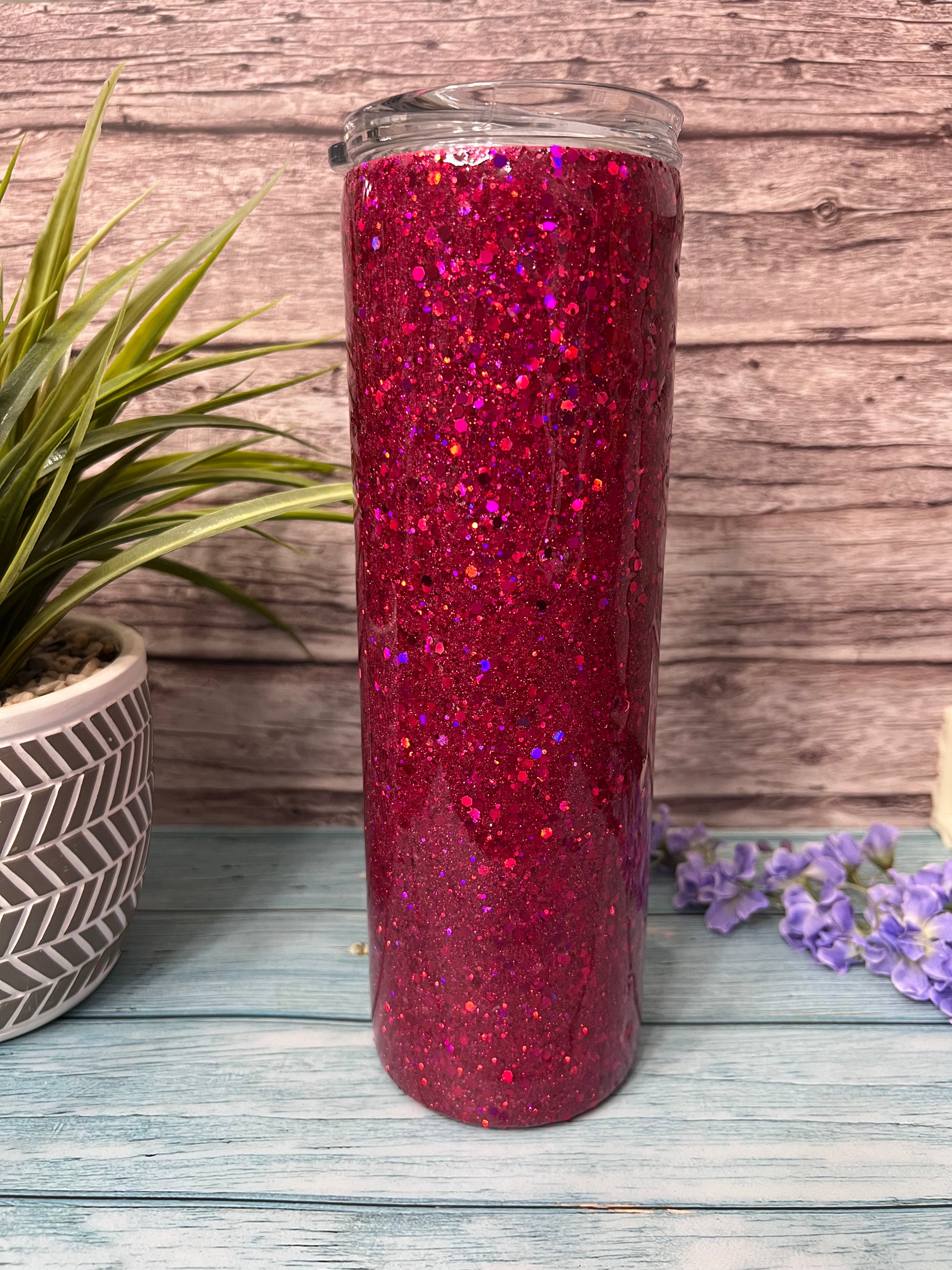 Chunky Dark Pink Glitter-30oz Skinny Tumbler-Pre Made