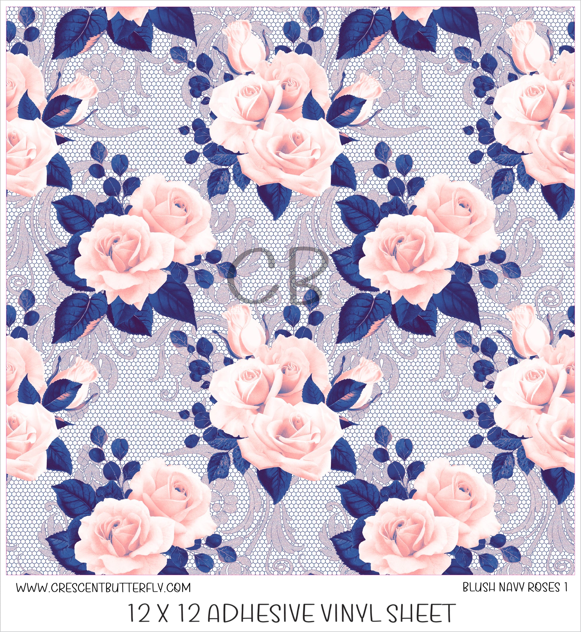 Blush Navy Roses 1 Printed Vinyl Sheet