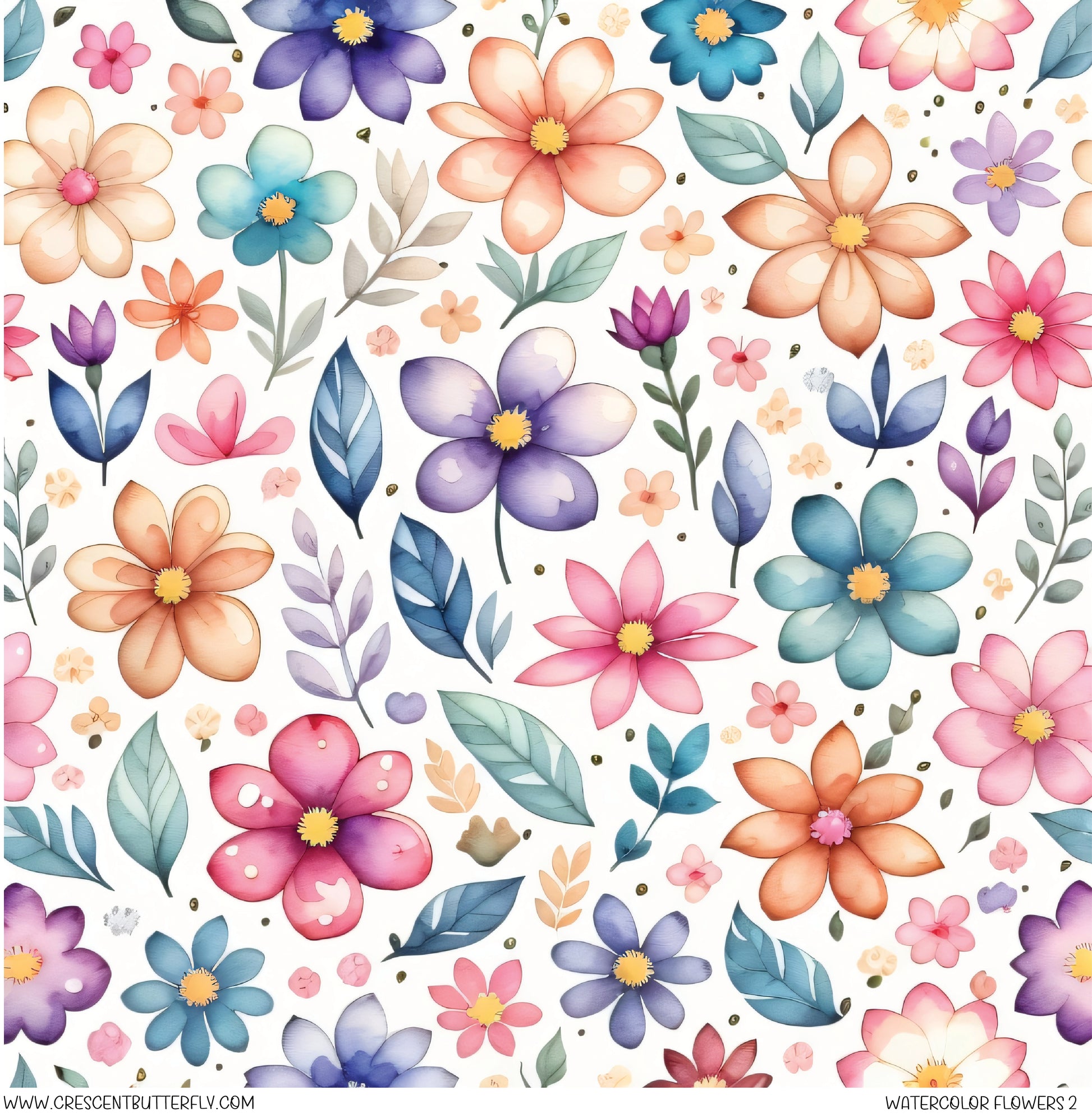 Watercolor Flowers 2 Printed Vinyl Sheet/Wrap