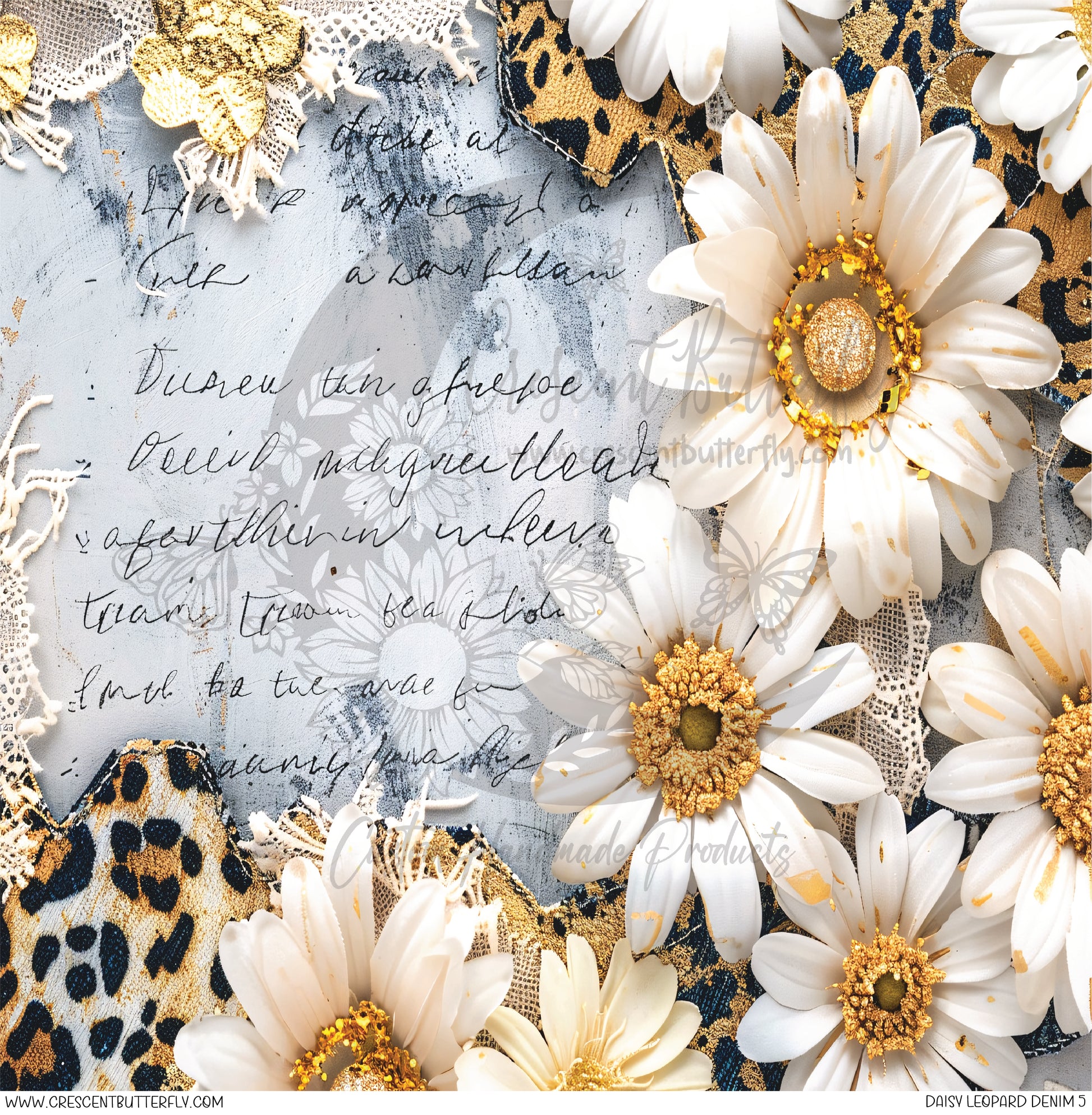 Daisy Leopard Denim 5 Printed Vinyl Sheet/Wrap