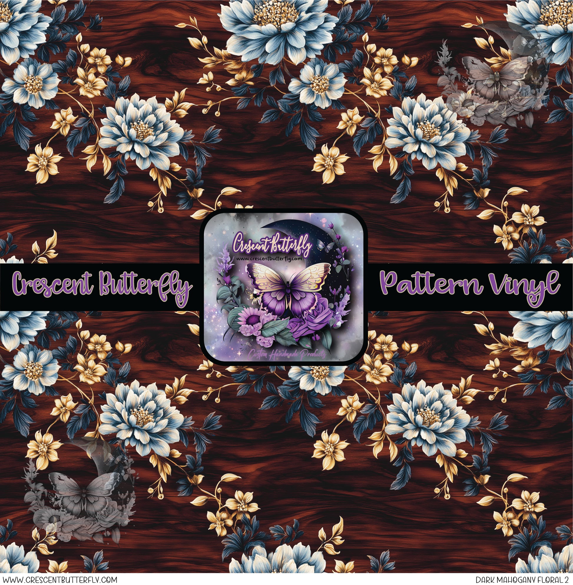 Dark Mahogany Floral 2 Printed Vinyl Sheet/Wrap