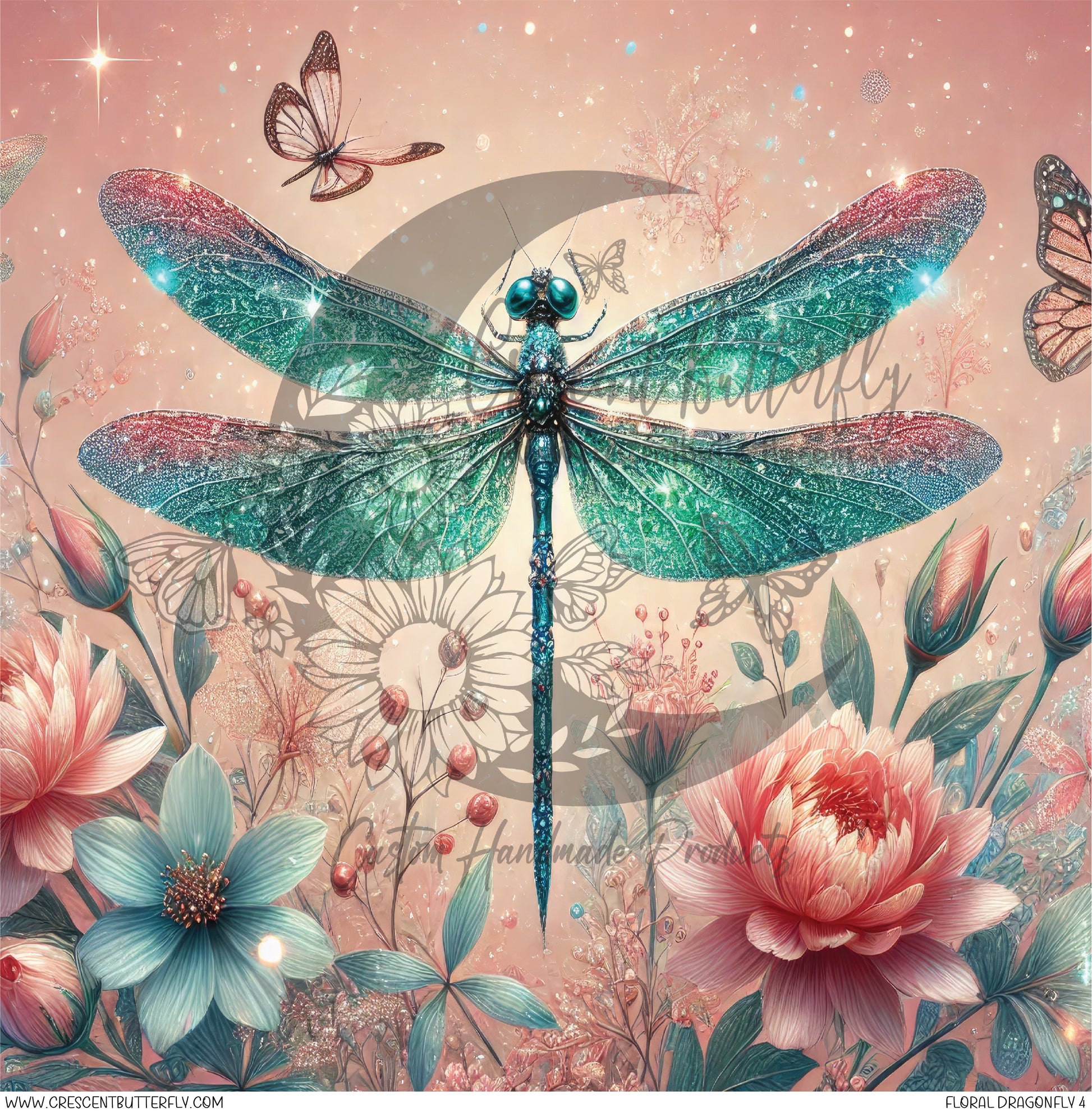 Floral Dragonfly 4 Printed Vinyl Sheet/Wrap