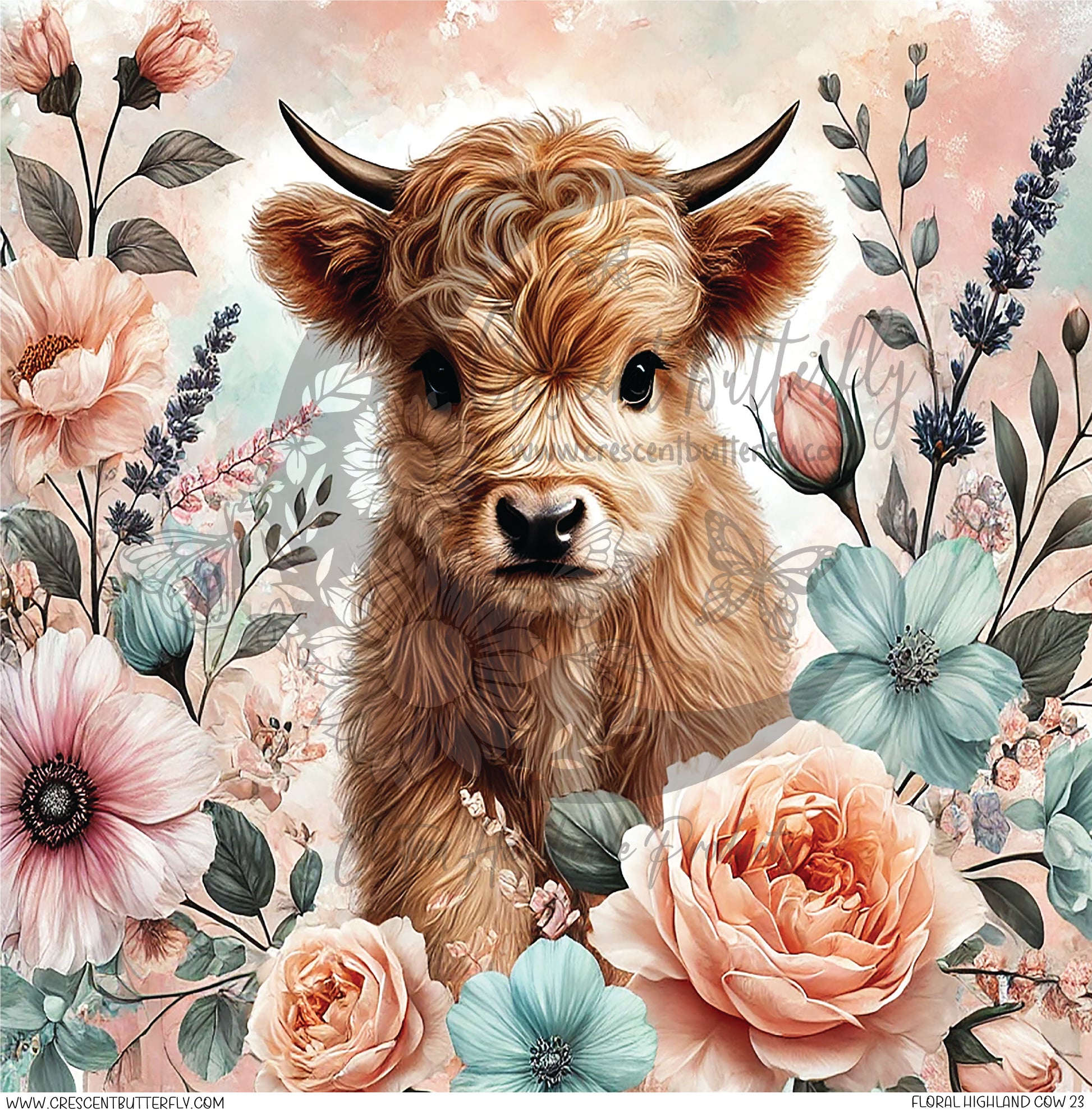 Floral Highland Cow 23 Printed Vinyl Sheet/Wrap