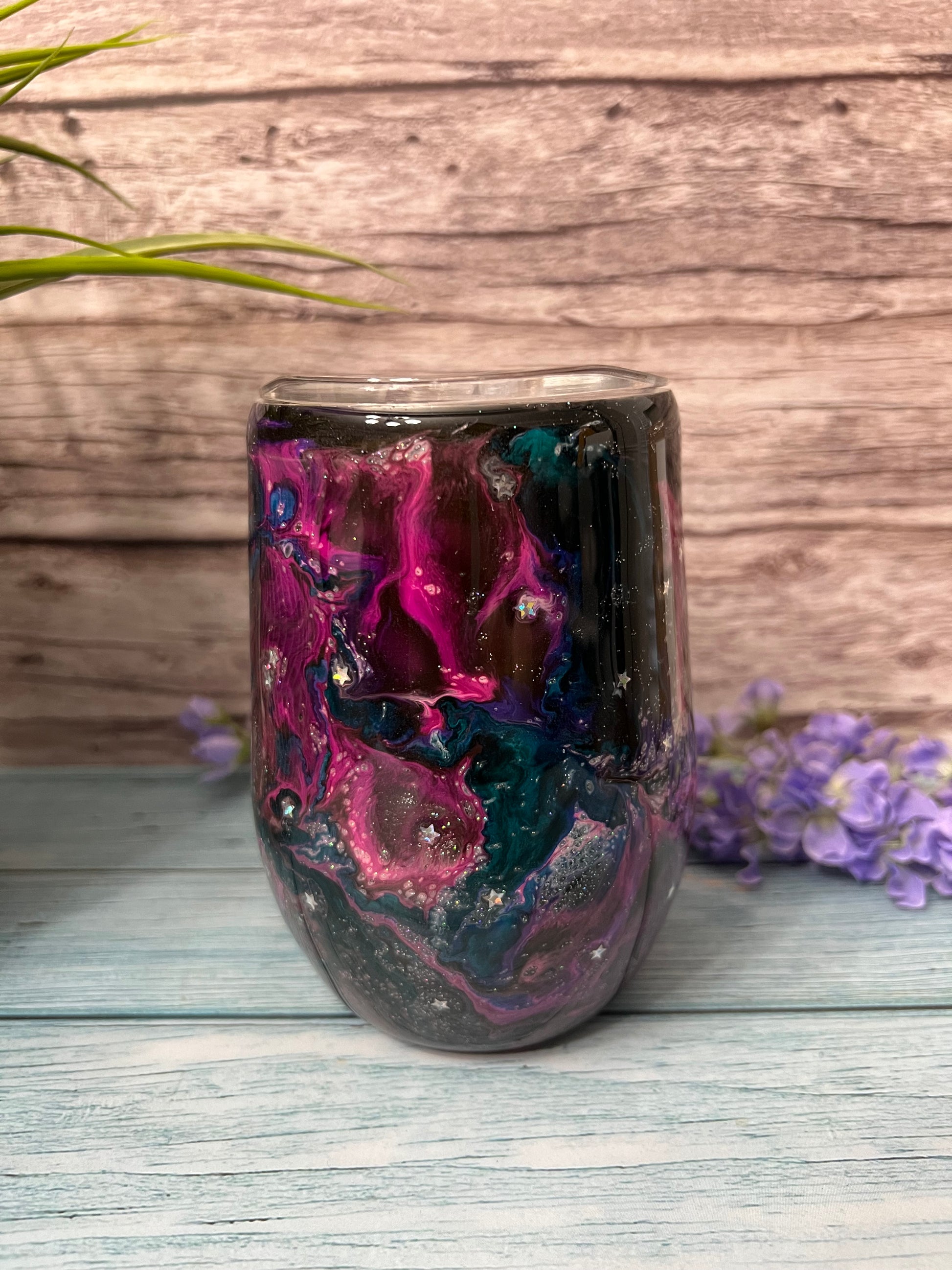 Order a custom and ask for this one by name! This design can be done on any size/style of tumbler, mug or bottle. (Shown on a 15oz Wine Glass)