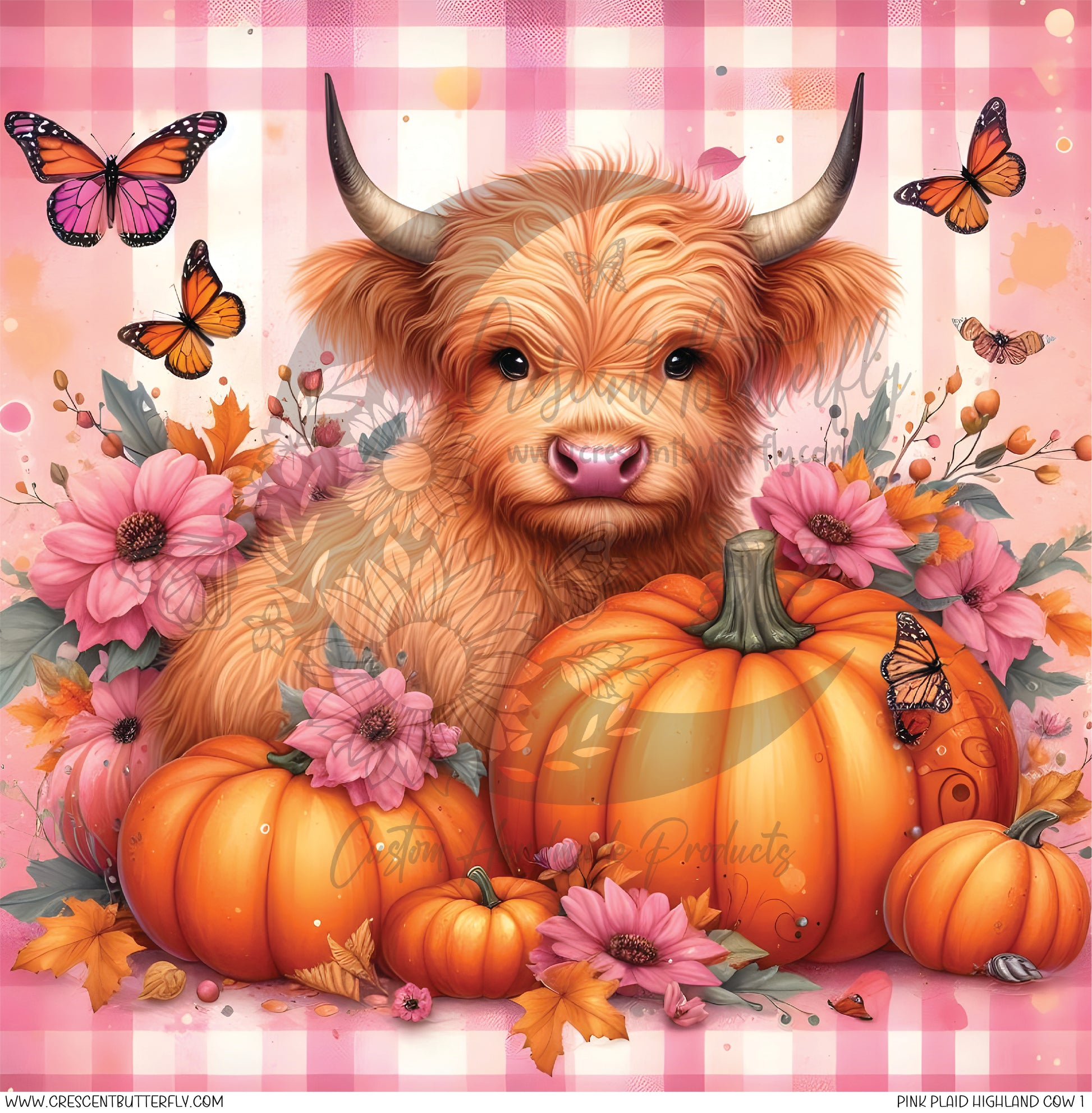 Pink Plaid Highland Cow 1 Printed Vinyl Sheet/Wrap