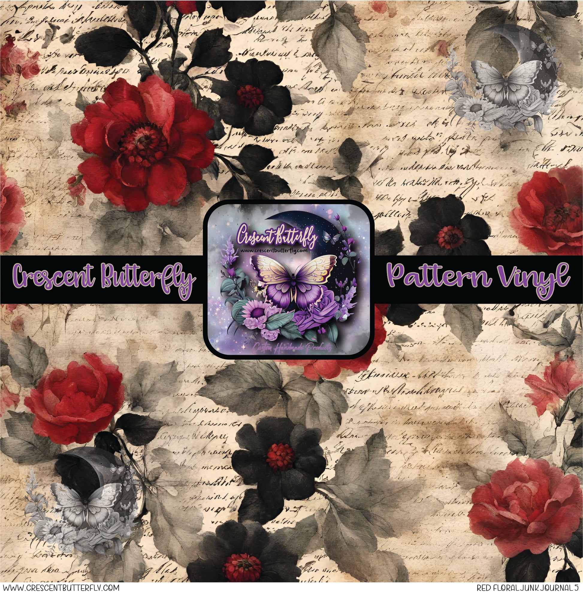 Red Floral Junk Journal 5 Printed Vinyl Sheet/Wrap