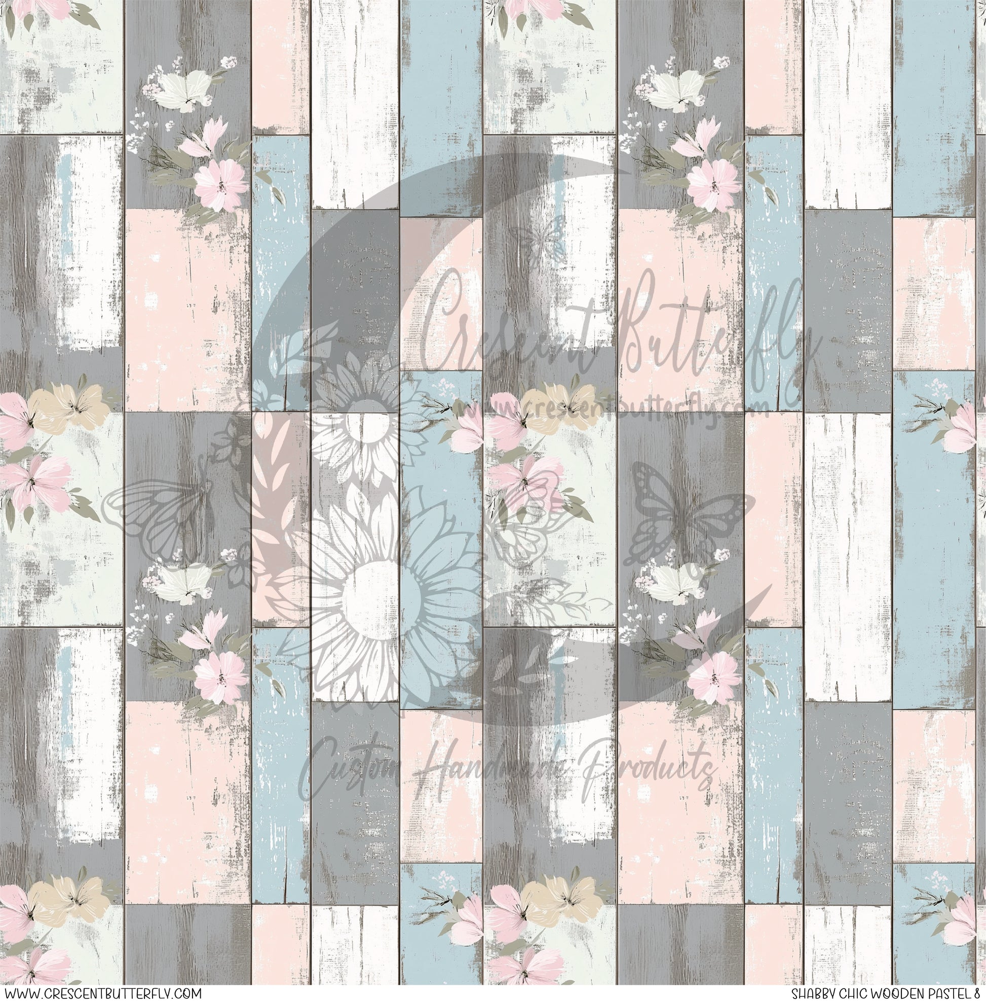 Shabby Chic Wooden Pastel 8 Printed Vinyl Sheet/Wrap