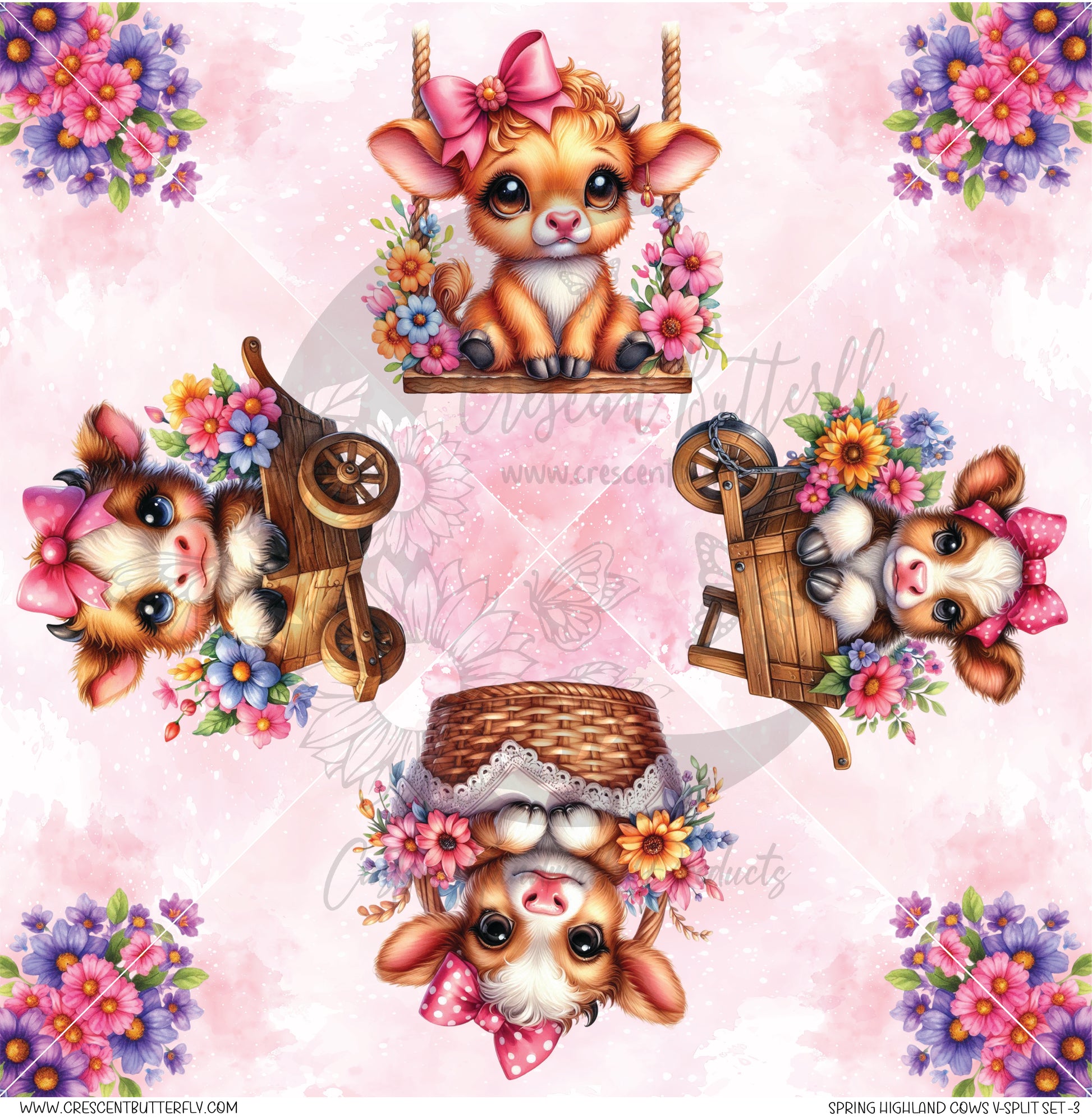 Spring Highland Cows V-Split Set 3 Printed Vinyl Sheet/Wrap