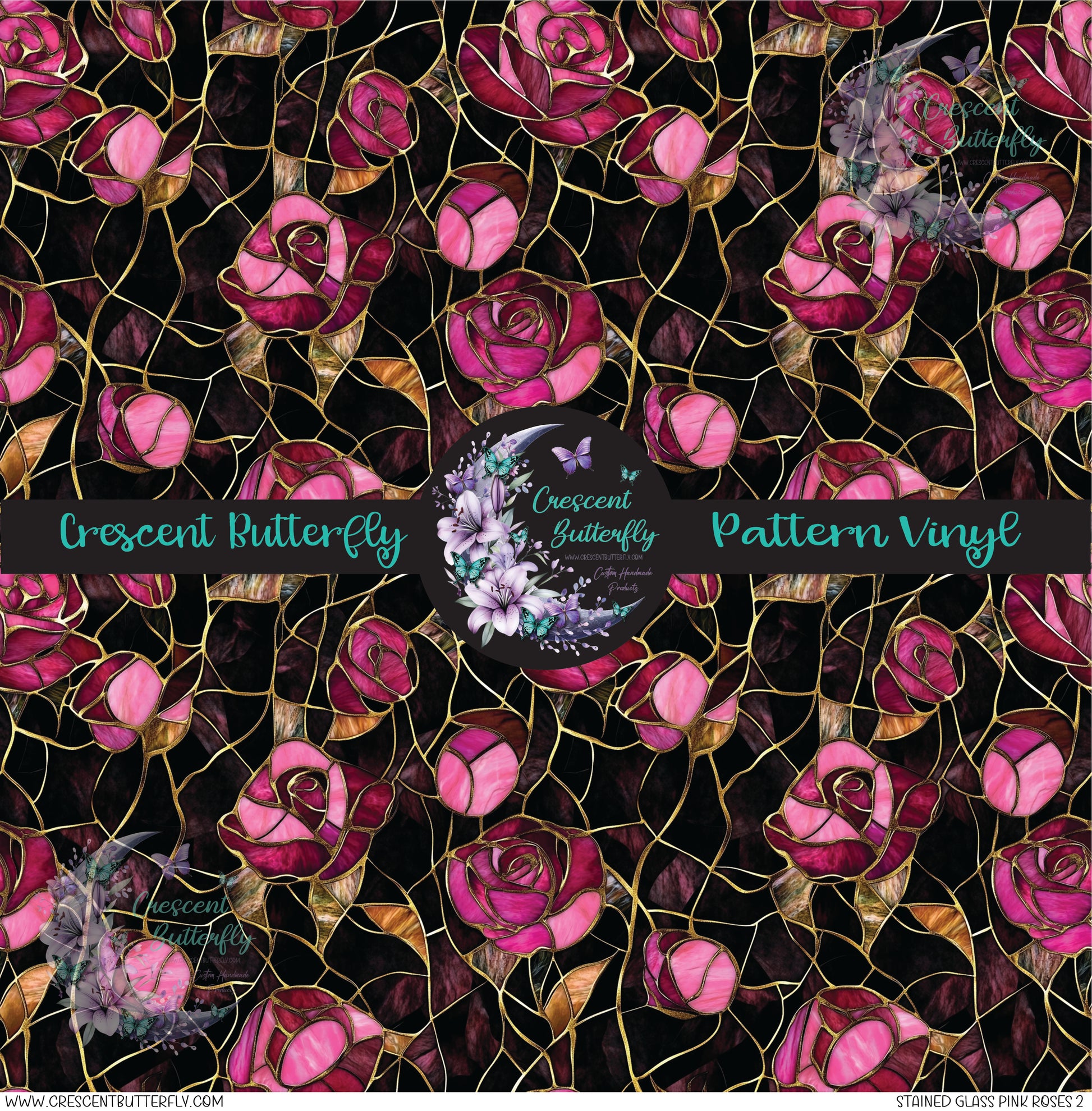 Stained Glass Pink Roses 2 Printed Vinyl Sheet/Wrap