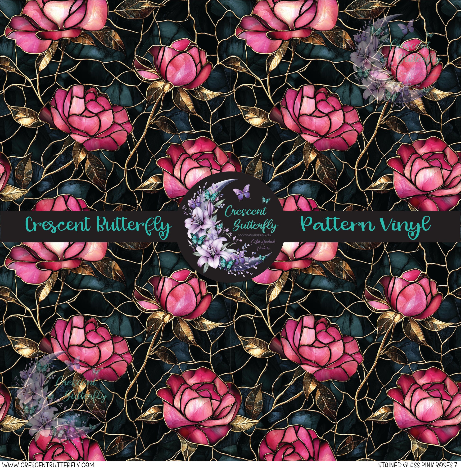 Stained Glass Pink Roses 7 Printed Vinyl Sheet/Wrap