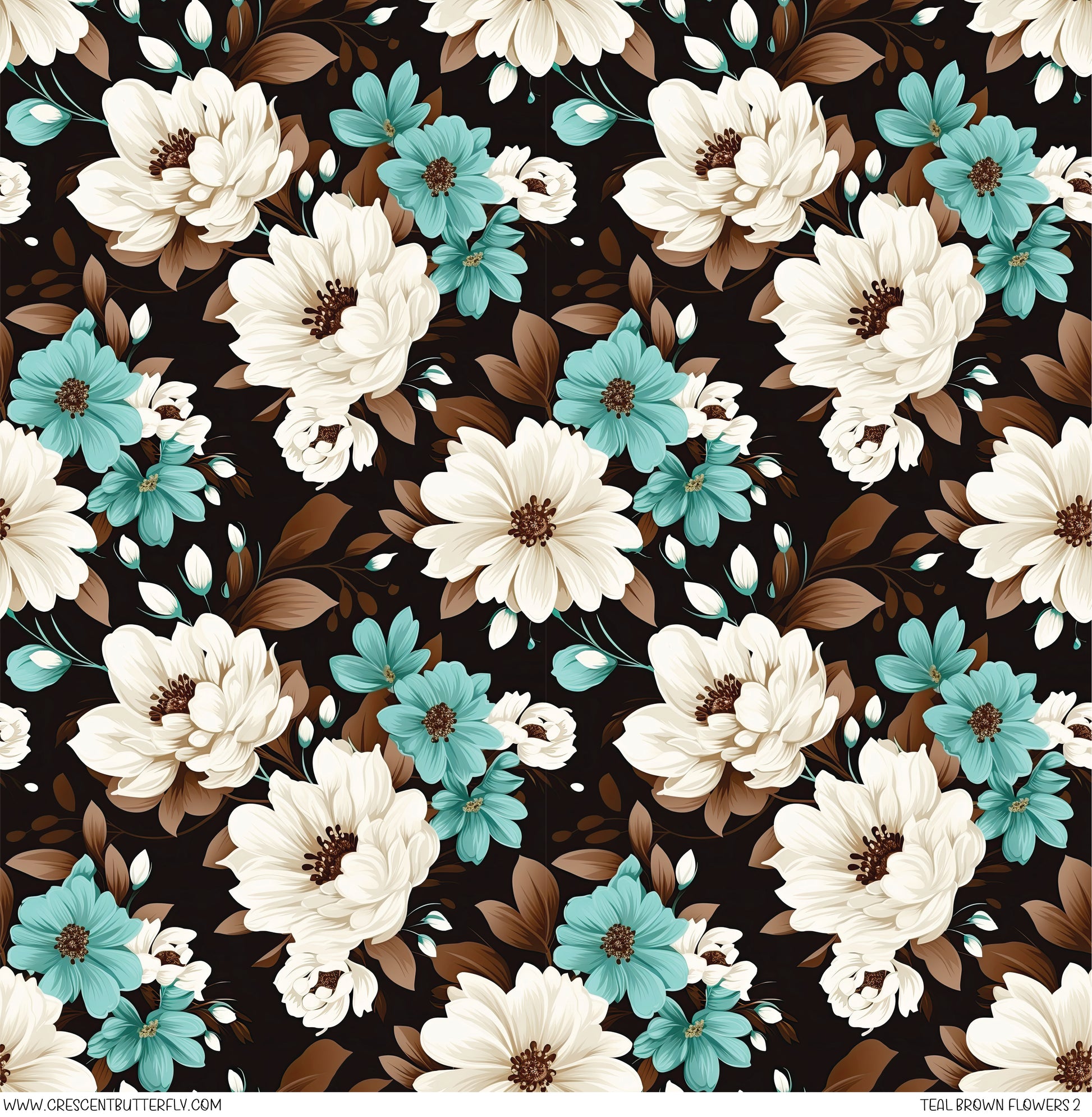 Teal Brown Flowers 2 Printed Vinyl Sheet/Wrap