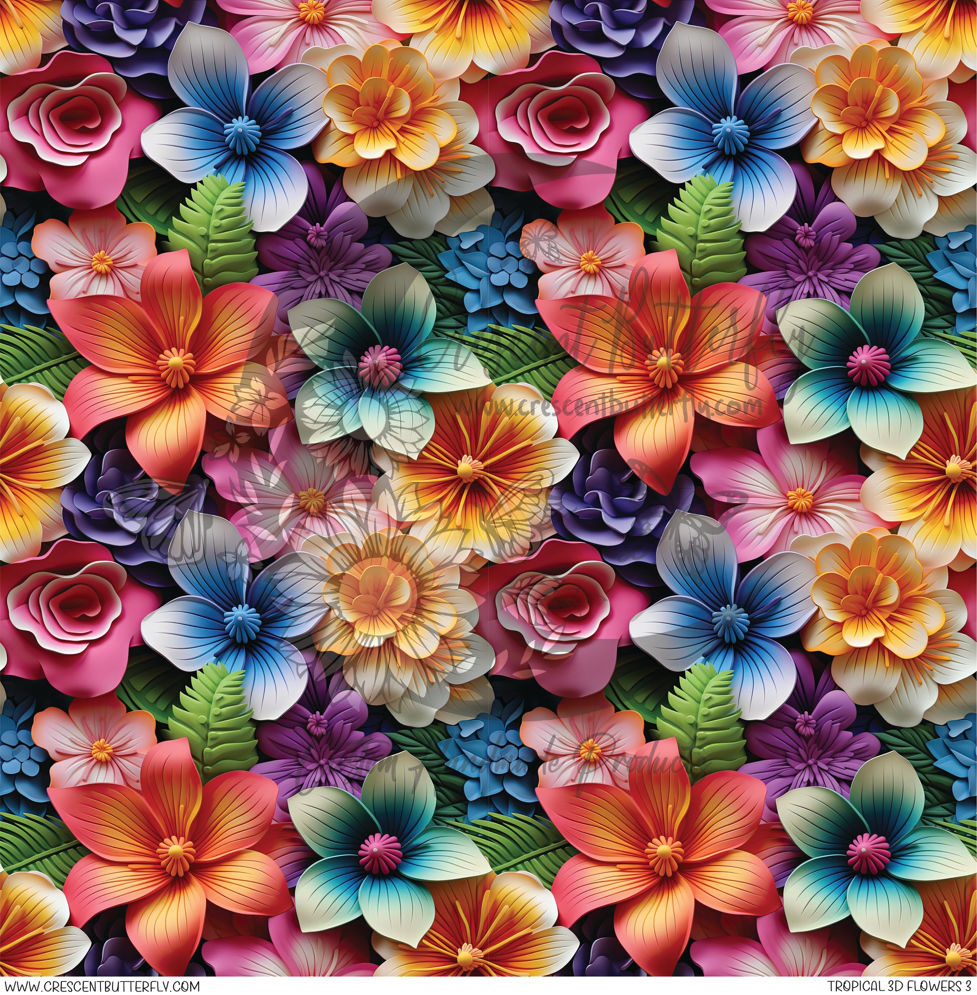 Tropical 3D Flowers 3 Printed Vinyl Sheet/Wrap