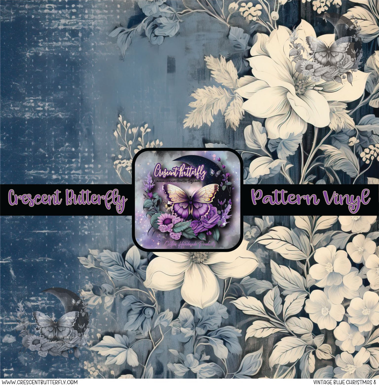 Vintage Blue Christmas 8 Printed Vinyl Sheet/Wrap
