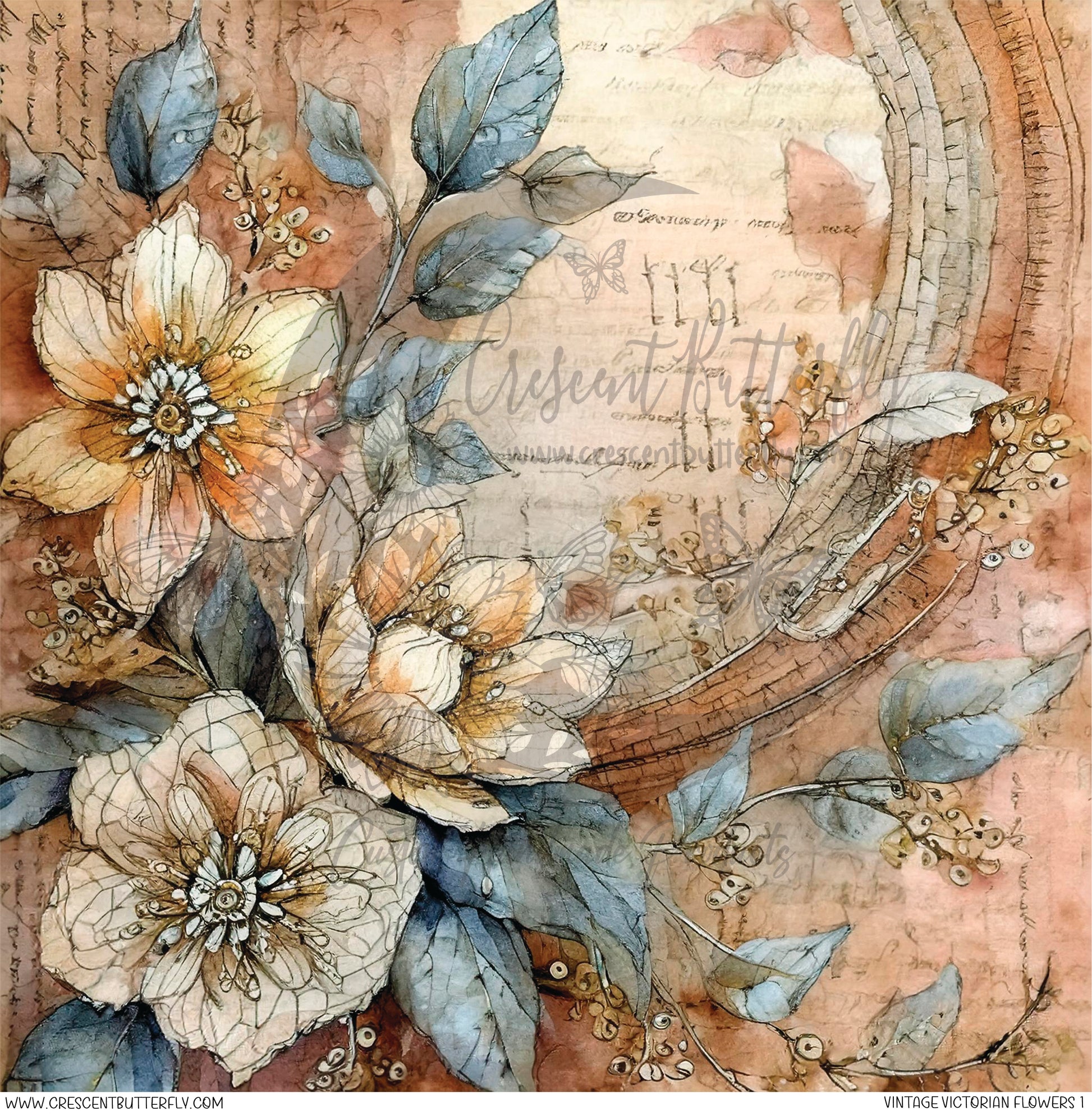 Vintage Victorian Flowers 1 Printed Vinyl Sheet/Wrap