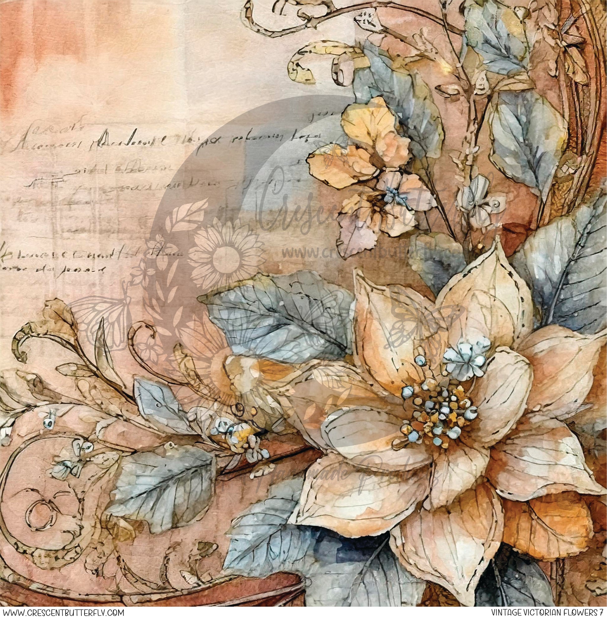 Vintage Victorian Flowers 7 Printed Vinyl Sheet/Wrap