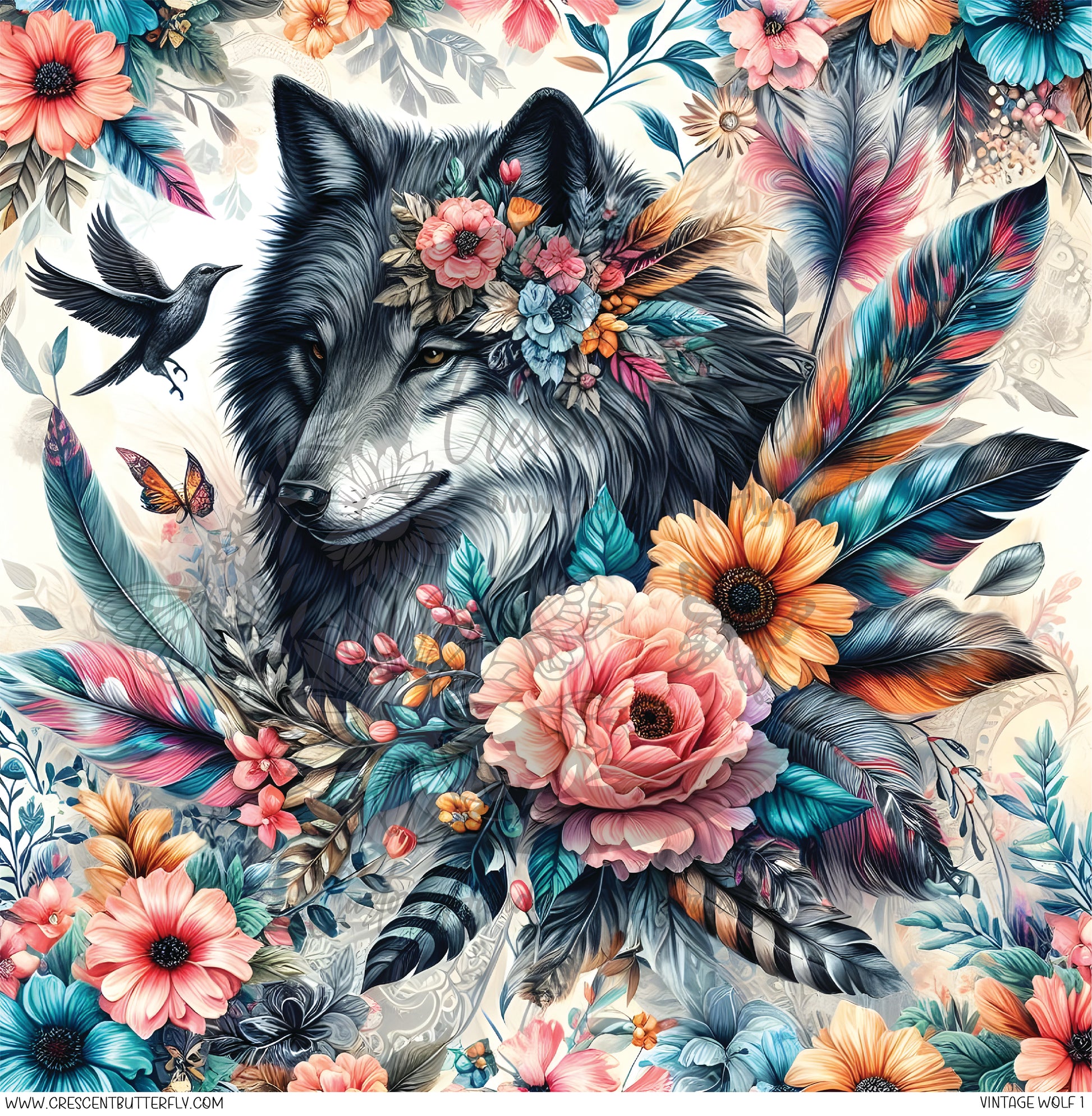 Vintage Wolf 1 Printed Vinyl Sheet/Wrap