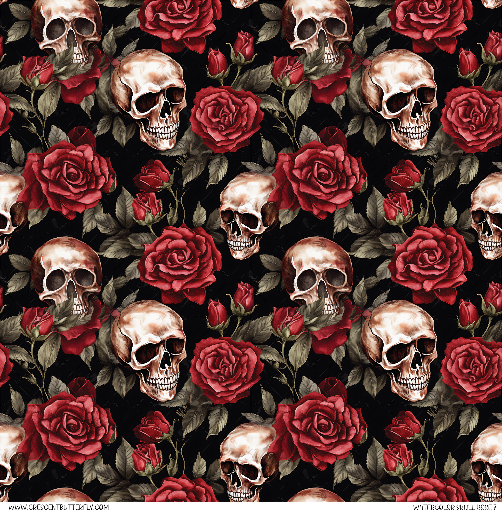 Watercolor Skull Rose 7 Printed Vinyl Sheet/Wrap